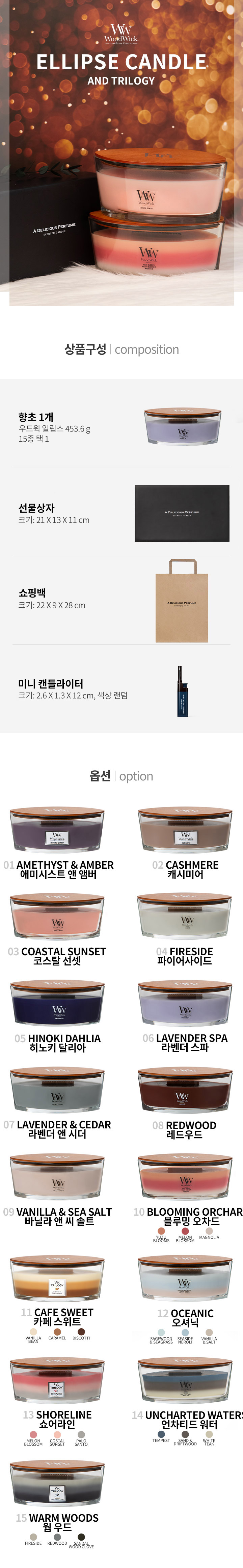 우드윅 일립스 캔들 453 g 병 향초 + 선물상자 (미니 캔들라이터, 쇼핑백)