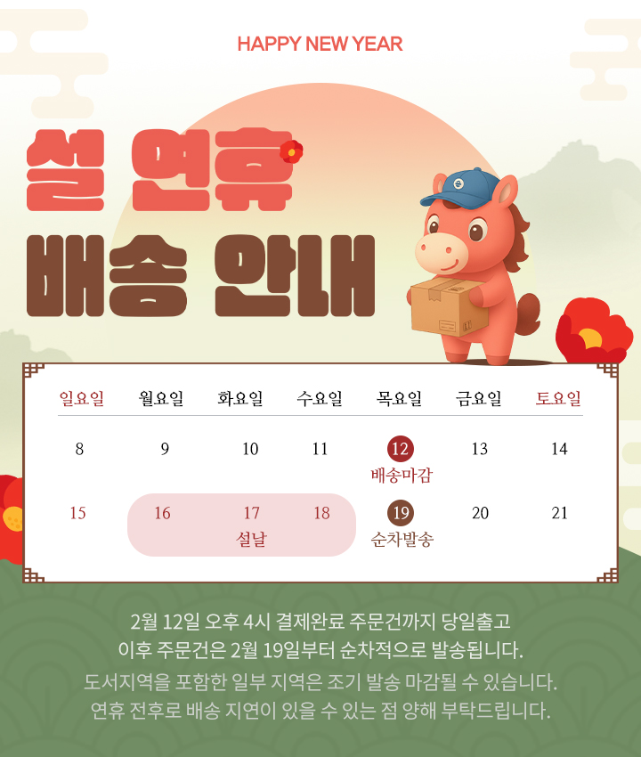 2026년 설 연휴 전 배송 마감 2월 12일 오후 4시 |