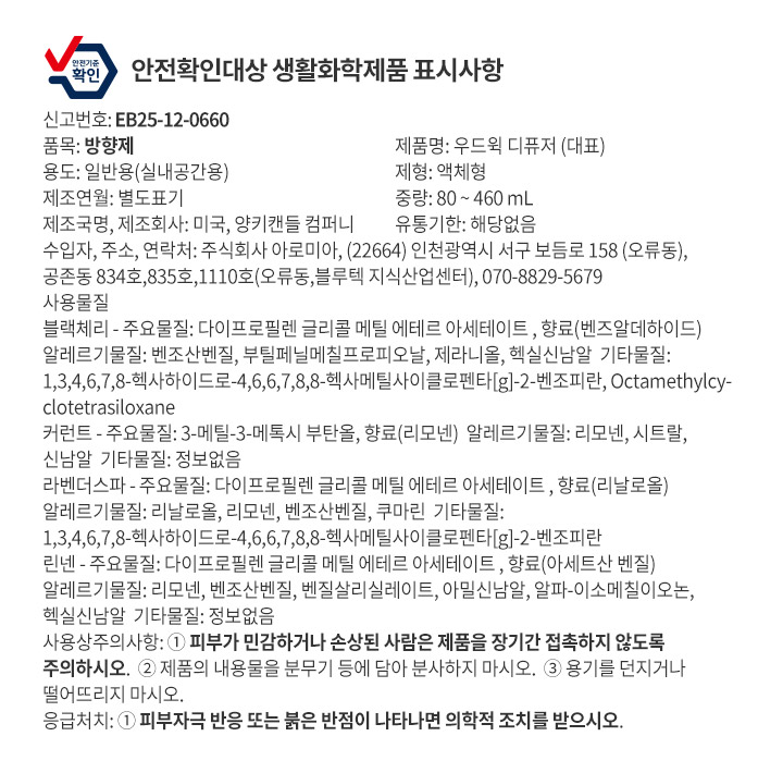 제품에 사용된 화학물질 명칭