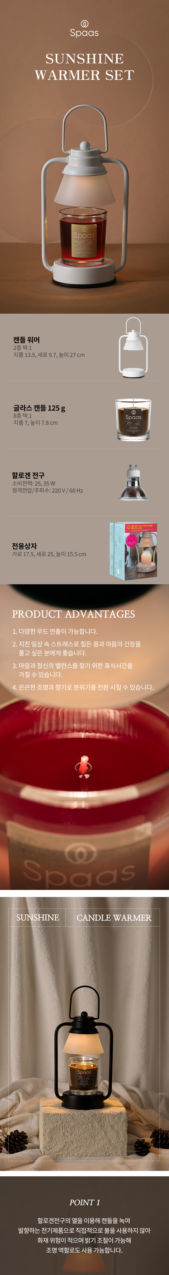 스파스캔들 글라스 향초 125 g 선샤인 캔들워머 세트 (국내산, 밝기조절)