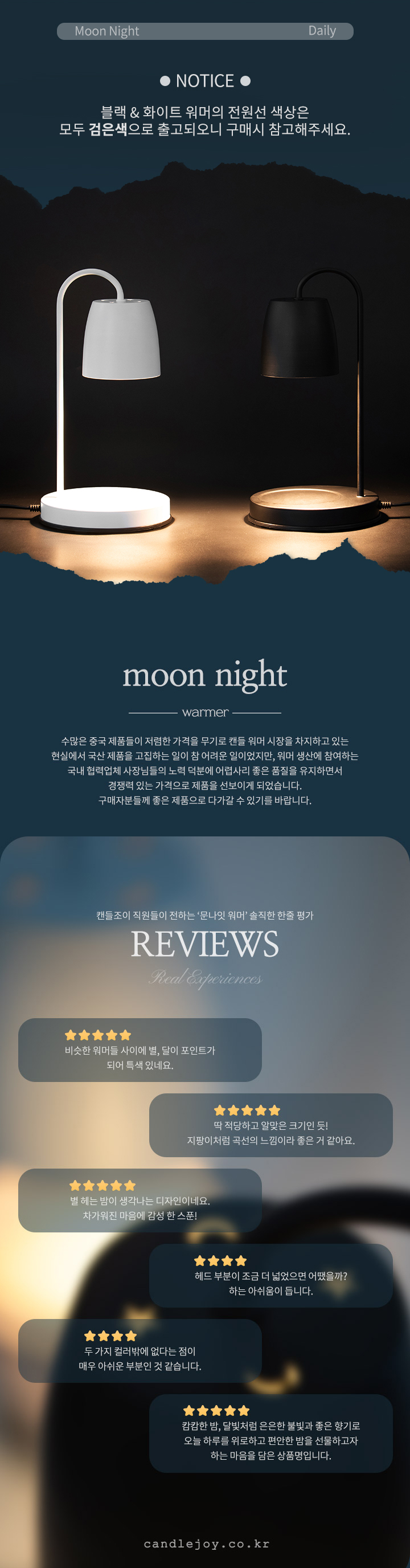 • 상품의 교환, 반품, 보증 조건 및 품질보증기준은 '소비자기본법'에 따른 '소비자 분쟁 해결기준'에 따라 보상해 드립니다. 상품 하자로 인한 환불 또는 교환 등은 '공정거래위워회 소비자분쟁해결기준'에 의거하여 처리해 드립니다. 고객게시판이나 고객전화(캔들조이 02-2292-2581)로 요청하시면 빠른 시일내에 처리해 드리도록 하겠습니다.